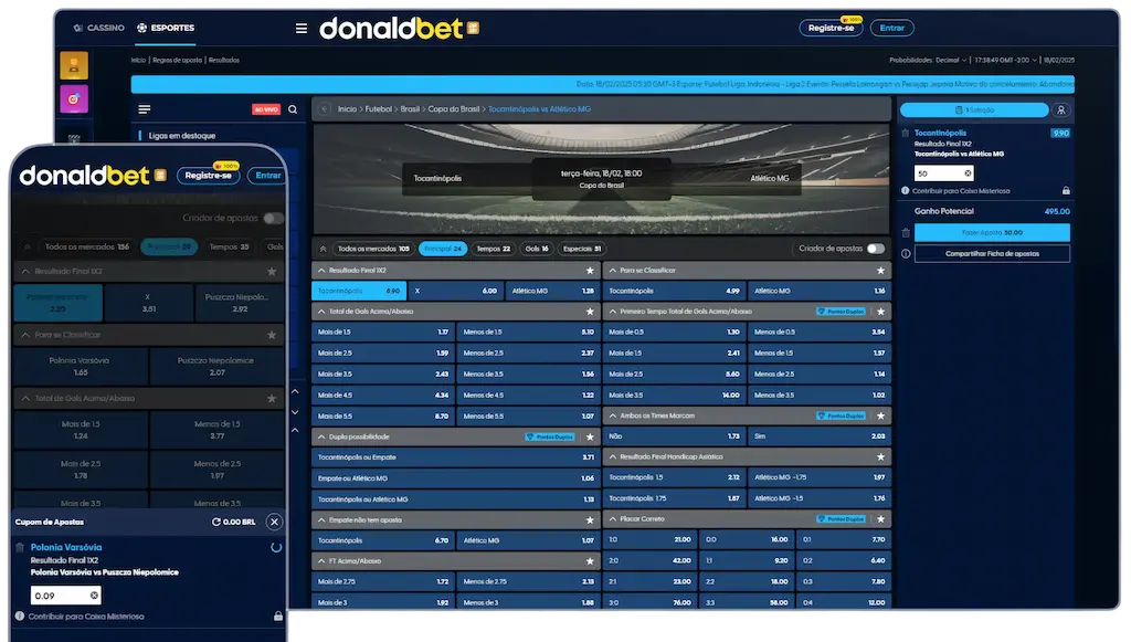 A Donaldbet apresenta uma plataforma de apostas inovadora, pensada para o público brasileiro, que abrange desde o cenário esportivo tradicional até os eventos do mundo digital. A proposta inclui uma variedade de alternativas para quem aposta em campeonatos, eSports e jogos de simulação, com uma navegação fácil, respostas rápidas e probabilidades vantajosas, visando proporcionar uma experiência de apostas proveitosa e agradável. Além das apostas regulares, a Donaldbet oferece recursos como as apostas ao vivo, possibilitando fazer previsões durante o desenrolar das partidas. A segurança e a justiça das atividades são asseguradas por uma licença emitida em Curaçao. Com melhorias contínuas e um catálogo crescente de eventos, a plataforma se mantém atualizada e alinhada com os desejos dos jogadores e entusiastas do esporte.